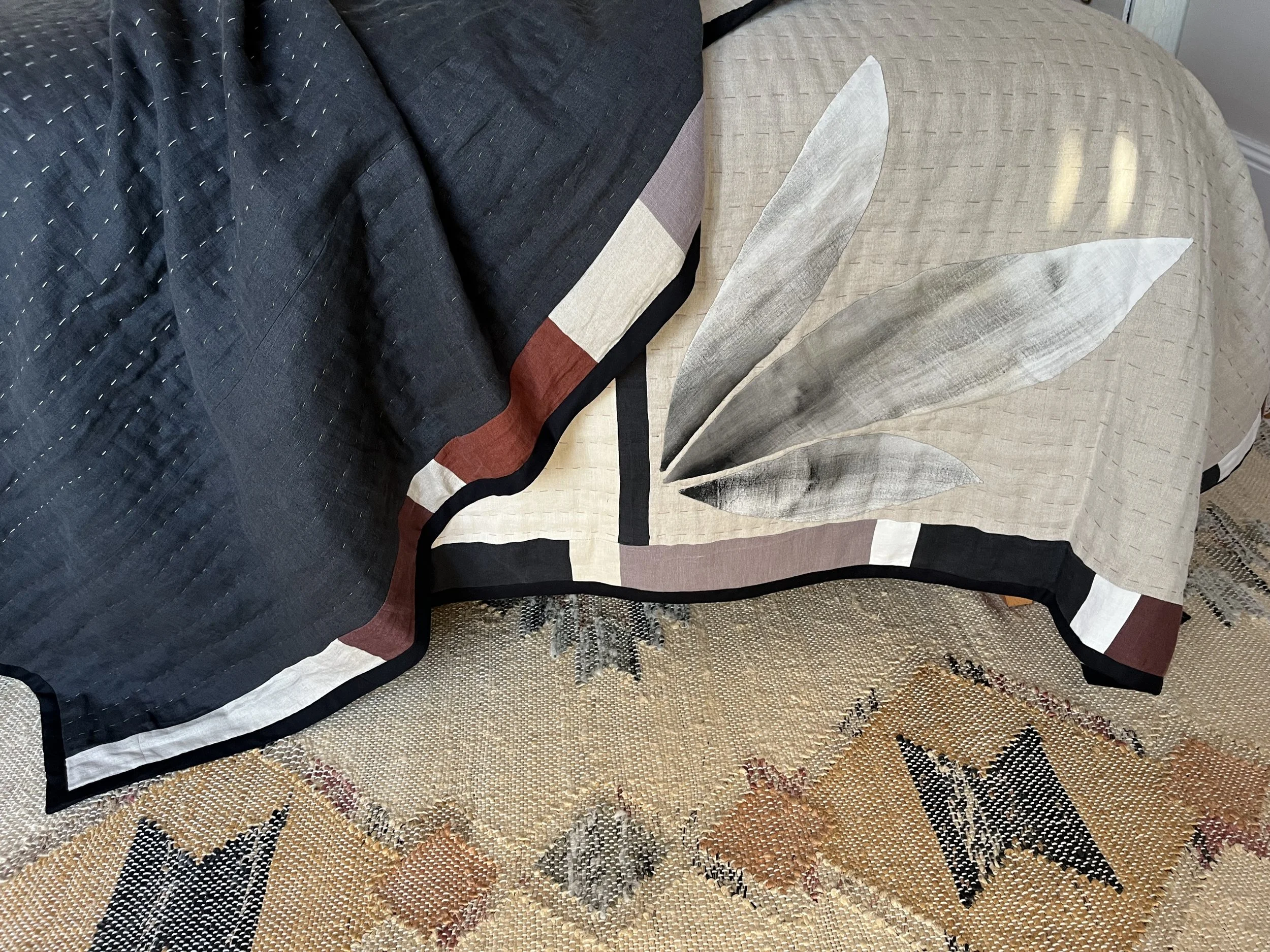 For this scheme I handmade a reversible quilted bedspread, a bespoke cushion, customised curtains, and textile artwork, to add depth and create a completely unique space.