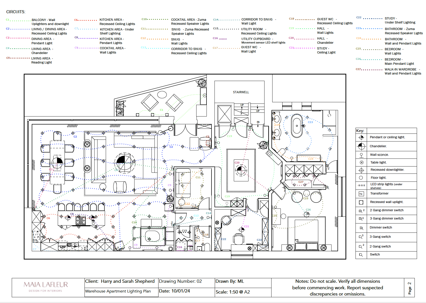 Finalise fixtures, fittings, finishes, all design documentation and technical drawings. Carry out required supplier visits. Complete lighting and electrical plans. Two on-site client meetings included.